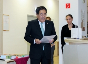 川上大使のRead Japan Project 図書寄贈式の出席 令和7年9月25日 9月23日、川上大使はコメニウス大学哲学部日本学科にて、Read Japan Projectを通じた図書の寄贈式に出席しました。同プロジェクトは、日本理解を促進することを目的として、世界各国の教育・研究機関に対し英文の日本関連図書を寄贈するものです。今回寄贈された図書が学生の皆さんの学習の一助となることを願っています。