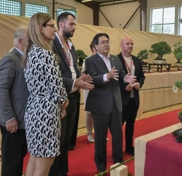 川上大使の盆栽・水石展訪問(ニトラ県ニェジェッド市)