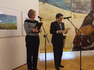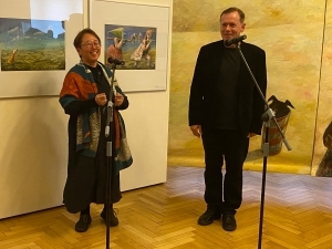 10月7日、川上大使は、スロバキア国立博物館で開催された展覧会「UNITED BY ART」の開会式に出席しました。この展覧会は、2023年に在外公館長表彰を受賞した日本人イラストレーター、降矢なな氏と、2025年ブラチスラバ世界絵本原画展(BIB)でプラケット(盾)を受賞したスロバキア人イラストレーター、ペテル・ウフナール氏による合同展です。