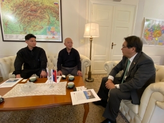 川上大使は両氏と空手の歴史や現代における意義について活発に意見交換し、沖縄発祥のこの伝統的なスポーツがスロバキアをはじめ世界中で高い人気を誇っていることを喜ばしく受け止めました。両氏は、空手が幼児から高齢者まで幅広い世代に適したスポーツであり、全身を使うことで身体的な健康に寄与するだけでなく、正しい呼吸法を促し、礼儀・謙虚さ・品格を養う教育的な価値もあると説明しました。