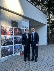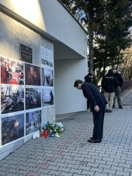 川上大使のロシアによるウクライナ侵略4年の節目に当たり開催された献花式への出席 令和8年2月26日 2月24日、川上大使は、当地ウクライナ大使館にて、ロシアによるウクライナ侵略4年の節目に当たり開催された献花式に出席しました。我が国はウクライナと共にあり、ウクライナにおける公正かつ永続的な平和の実現に向けて、EU及び加盟国と協力していきます。