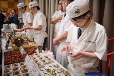 会場では、当館の公邸料理人を含め、ブラチスラバを拠点とする飲食店等の日本人料理人が手がけた様々な日本食を来場者に振る舞うとともに、日本酒も提供したほか、日本からも日本食関係者が来訪し日本食の魅力を紹介することができました。さらに、当地に進出する多くの日系企業も展示を行いました。
