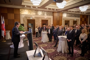 2月23日、当館はブラチスラバ市内のホテルに於いて、令和7年度天皇誕生日祝賀レセプションを開催しました。レセプションには、スロバキアの政府関係者、国会、経済団体、民間企業、日系企業、文化、教育、研究、当地外交団等の多くの関係者のご出席をいただきました。