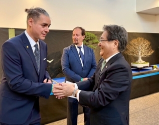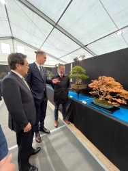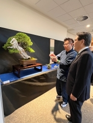 川上大使の全国盆栽展視察 令和8年4月14日 4月10日、川上大使はバンスカー・ビストリツァ市内で開催された第23回全国盆栽展を視察しました。スロバキア盆栽協会会長のヤンチナ氏および、藤川鳳政園の藤川政幸氏に案内いただき、スロバキア国内だけでなく、欧州各地の盆栽家の作品を鑑賞しました。盆栽がアートとして多くの方に親しまれていることを実感するとともに、スロバキアでこのような大規模な盆栽展が開催されたことを嬉しく思います。